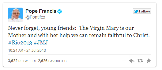 El Papa acaba de regresar de su visita a Brasil, y tres historias diferentes del viaje dominan las noticias religiosas la semana pasada. En primer lugar, declaró que ‘retweteando’ sus actualizaciones sobre el Día Mundial de la Juventud ayudaría a merecer la indulgencia. Luego se ofició una misa de 3 millones de personas en Brasil y, por último, declaró que “no es mi papel juzgar sacerdotes homosexuales.”