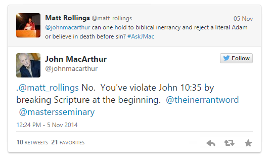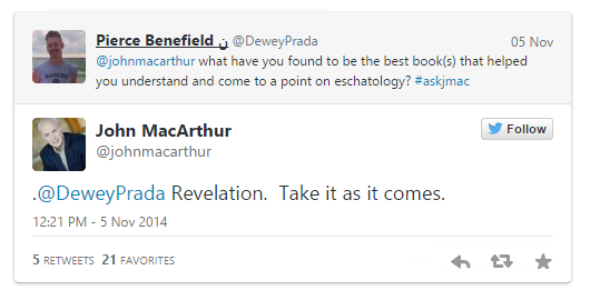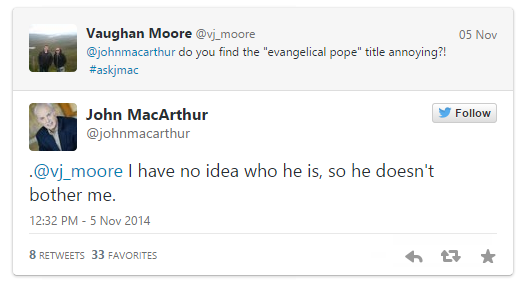 La semana pasada, John MacArthur desempolvó su cuenta de twitter, y la abrió para hacerla funcionar. Parte de eso fue ser anfitrión de una sesión de P y R en tiempo real. Éstos son los aspectos más destacados: