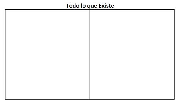 Haga que su visitante lea el versículo en voz alta. Luego tome una servilleta o un pedazo de papel de borrador y dibuje un cuadro grande. Explique que este cuadro representa todo lo que existe. Trace una línea por el medio del cuadro , dividiendo todo lo que existe en dos categorías. Se verá algo como esto: