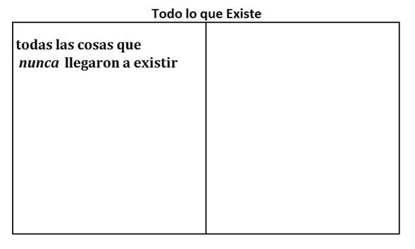 En lado izquierdo escriba “todas las cosas que nunca llegaron a existir,” es decir, todas las cosas qye exsten pero nunca fueron creadas.