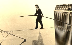 El sargento Charles Daniels, un oficial de policía de NYPD, recibió una llamada inusual en la madrugada del 7 de agosto de 1974. Alguien había visto a un hombre de pie sobre un cable suspendido entre los dos edificios más altos del mundo, las Torres Gemelas del World Trade Center . Subió a la azotea de la torre por el ascensor, que tomó varios minutos. En sus palabras, esto es lo que vio:
