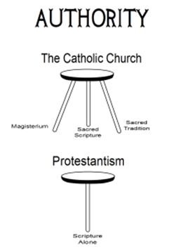 La santa Tradición, la sagrada Escritura y el Magisterio de la Iglesia, según el plan prudente de Dios, están unidos y ligados, de modo que ninguno puede subsistir sin los otros; los tres, cada uno según su carácter, y bajo la acción del único Espíritu Santo, contribuyen eficazmente a la salvación de las almas. –Catecismo de la Iglesia Católica 95.