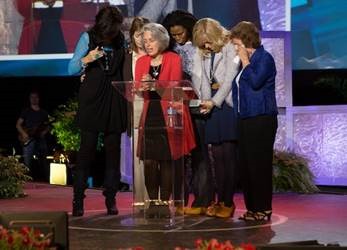 Bob (conf): Y así mientras nosotros estamos llamando a las mujeres a buscar a Dios y buscarle por un avivamiento en sus propias vidas y en sus iglesias y en nuestra nación, hemos dibujado un círculo alrededor del podio.