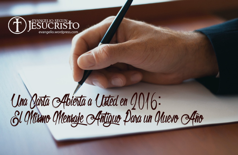 Aunque estoy un día mas tarde, cuando nos aproximamos a los retos y oportunidades del 2016, quiero escribir una carta abierta de cosas que se centran en las realidades más importantes del mundo. Y el destinatario de la carta abierta es usted. No importa quién es usted, ya sea joven en la fe, un santo experimentado, o no es un creyente en Jesús del todo, si seamos buenos amigos, si sólo hemos hablado unas cuantas veces, o si no te conozco para nada – No puedo pensar en nada más rentable que me gustaría decir a usted directamente. Y tal vez la característica más interesante de esta carta abierta para el 2012 es que no es nada nuevo. Es el mismo mensaje antiguo para un nuevo año, porque es el único mensaje que es suficiente para trascender todos los tiempos y culturas. Es el Evangelio de Jesucristo. Espero que lo lea detenidamente.