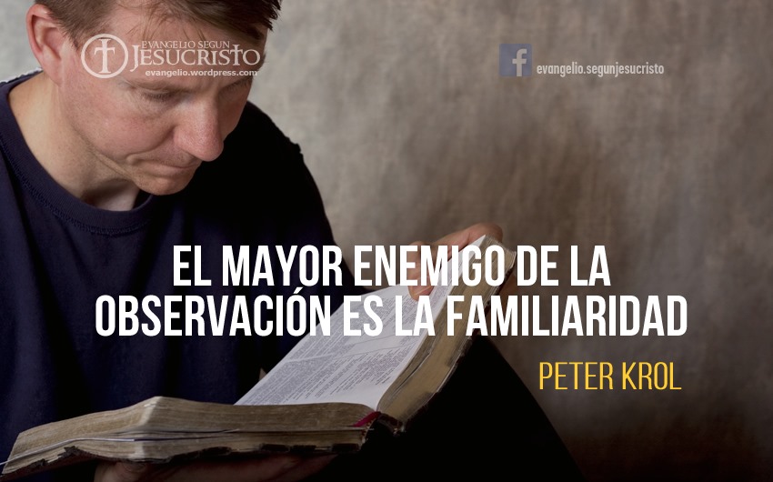 El primer paso de nuestro método de estudio de la Biblia es la observación. Antes incluso hemos cruzado la línea de ataque, no obstante, la familiaridad está justo allí para derribarnos.Cuando creemos que sabemos algo, dejamos de prestar atención a ella.