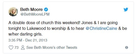 [“Una doble dosis de iglesia este fin de semana! Jones y yo iremos esta noche a Lakewood para adorar y escuchar a @ChristineCaine y estar con sus queridas chicas.”]