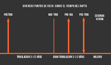 En el resto de este capítulo veremos los cinco puntos de vista más comunes con respecto al tiempo del rapto. Tocaremos la vista pretribulacional sólo momentáneamente porque la examinaremos más a fondo más adelante. Y pasaremos la mayor parte de nuestro tiempo en los otros cuatro puntos de vista aquí, y examinaremos sus debilidades.