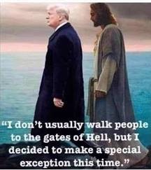 Piensan que Trump es tan malo que Jesús no puede esperar a enviarlo al infierno.